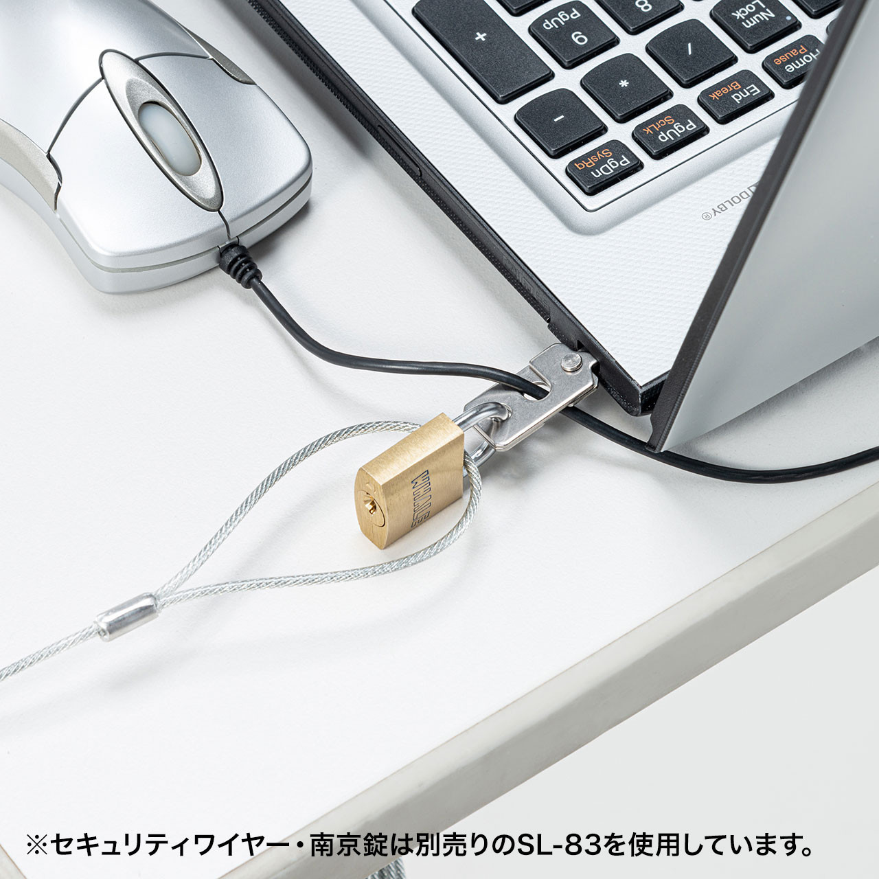 | 注意事項 | ※約2.5×6mmのNanoセキュリティスロットに対応します。 ※約3×7mmの標準サイズ、約3.2×4.5mmの(Noble ロック)のセキュリティスロットには対応しません。 |